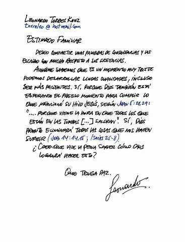 Muy triste noticia pero en Apocalipsis 21:3,4 nuestro amado creador Jehová nos hace una promesa maravillosa que ya no existirá la muerte el dolor ,así quejar que aferrarse a esa promesa para esperar a nuestros seres amado en un hermoso paraíso que todos esperamos según su promesa.un abrazo a fernandita , juan pablo y familia.